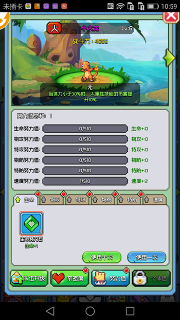 努力值是精灵单一提升某项战斗数值的玩法,每个精灵拥有生命、物攻、特攻、物防、特防、速度等6种属性,根据精灵的具体情况提升。