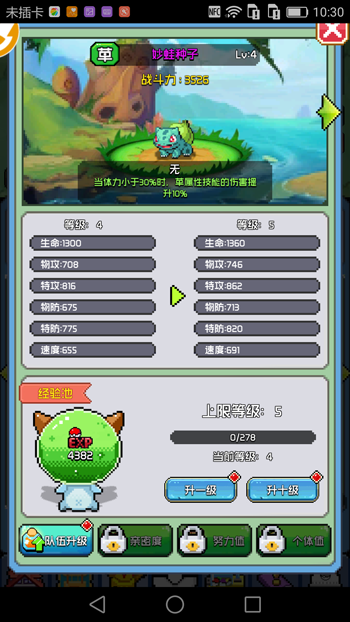 提升等级是精灵提升战斗力的最佳途径,提升等级后精灵的各项数值都会得到提升,而且是全方位的。