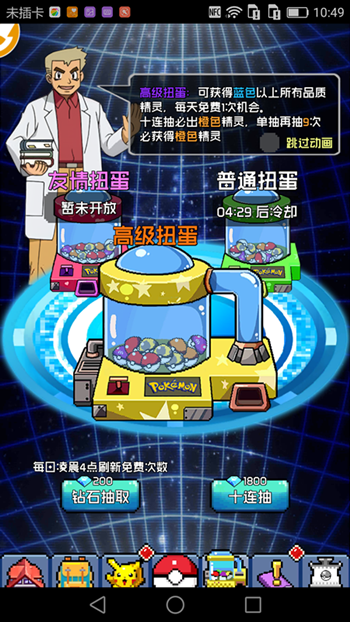 《掌机小精灵》中的扭蛋玩法与手游中的十连抽其实是一个道理,通过几率来获取精灵和道具。