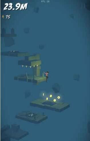 游戏中,玩家通过跳跃不断向下前进,落在一个个安全的平台是必须的。只不过事态并非如玩家所愿,游戏中的平台到处布满了机关,虽然也有金币这种意外收获,但更多时候尖刺、碎石、障碍都将阻挡玩家的脚步,甚至还限制了玩家的最大跌落高度,想要一口气直达地底就歇歇吧。