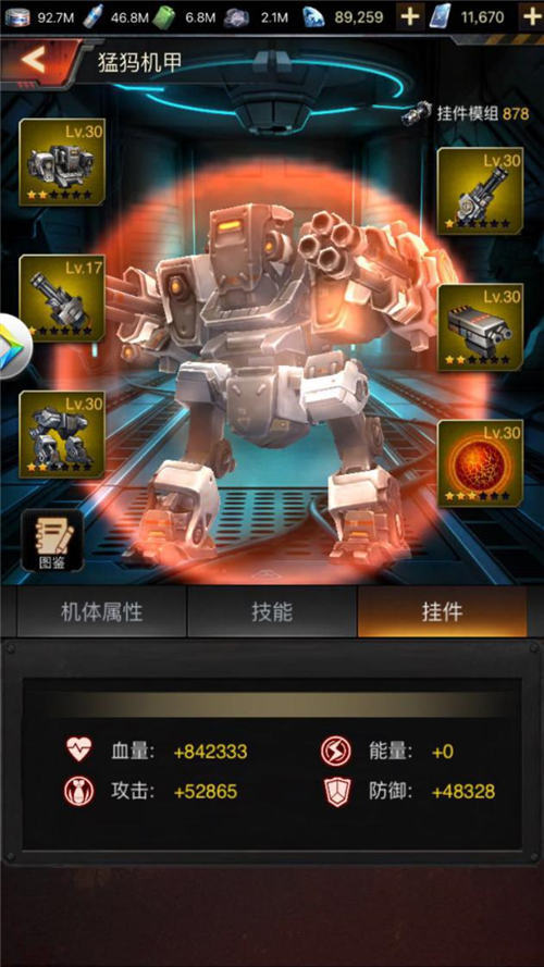机甲是军队一层攻无不克的钢铁战衣,可以说是我们除了执行官外的另一项人形武器,除了技能搭配之外,指挥官们还需要通过对机甲挂件的升级和打磨,使其不断进化。主炮、右肢、左肢、背挂、动力足、动能力场六个机甲挂件部位,每个部位玩家都可安装不同属性的挂件,例如背挂系统拥有增强刀兵攻防、战车攻防、枪手攻防不同属性,指挥官们需要根据战场形势和自身兵种选择其中一种属性的背挂来增强战力。