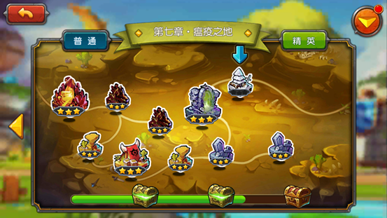 战役副本即为游戏中传统PVE推图模式,分为普通和精英两种难度。玩家每日消耗体力进入副本,顺利通关即可获得奖励和星级评价并且开启新的关卡和章节。当玩家通关副本累计星级评价达到一定数量,即可开启宝箱,获得丰厚的金币、钻石以及道具奖励。